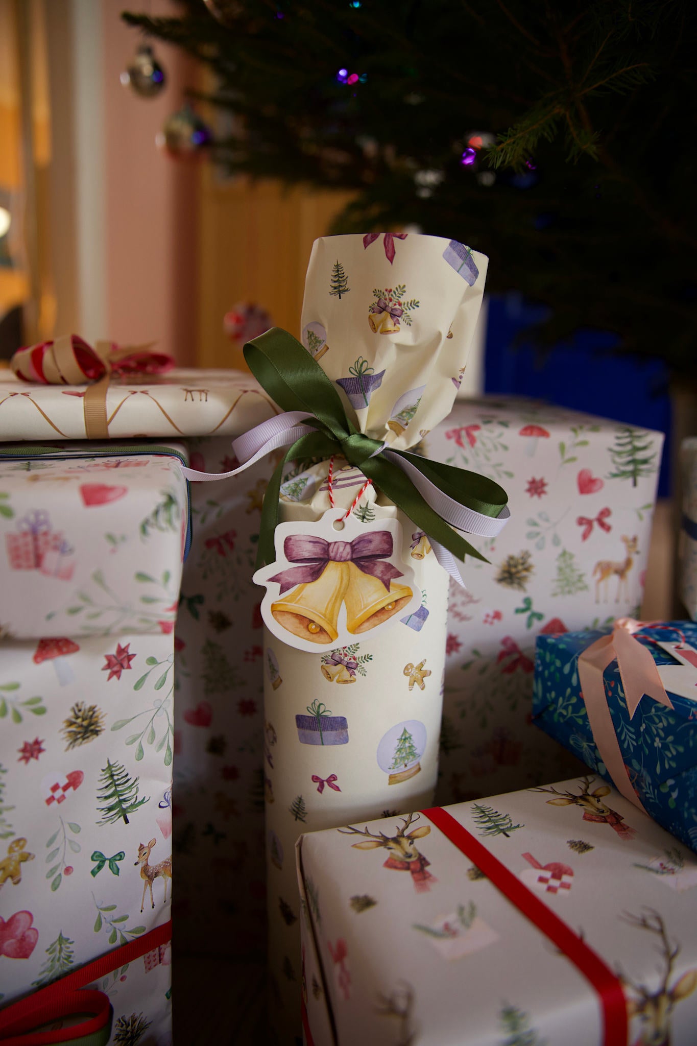 Gavemærkerne har glat, blank overflade på forsiden og er matte på bagsiden i postkort karton, så de er nemme at skrive på.