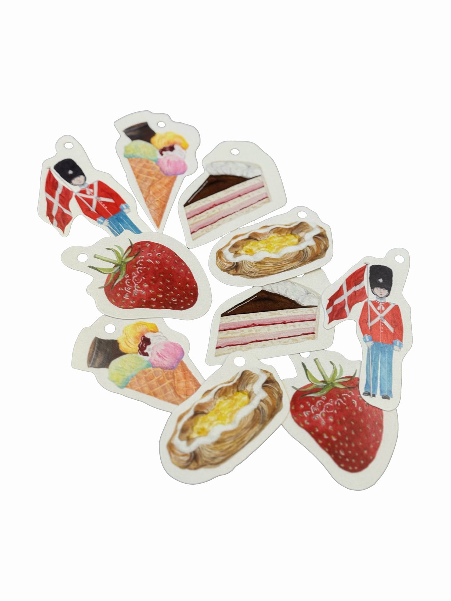 10 gavemærker med fine danske motiver. Der er 2 x 5 motiver, 10 gavemærker i alt.