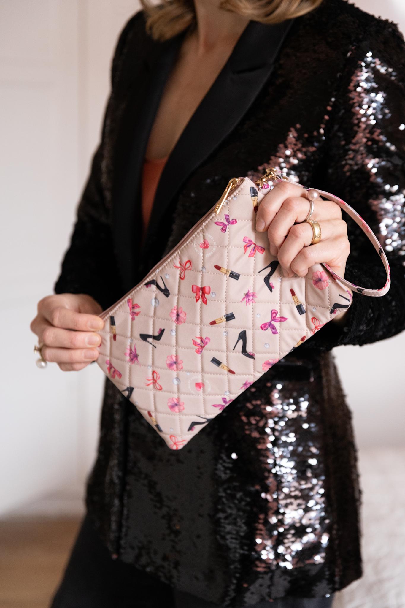 Det er også muligt at tilkøbe en toilettaske og kosmetikpung i samme serie, der matcher clutchen.