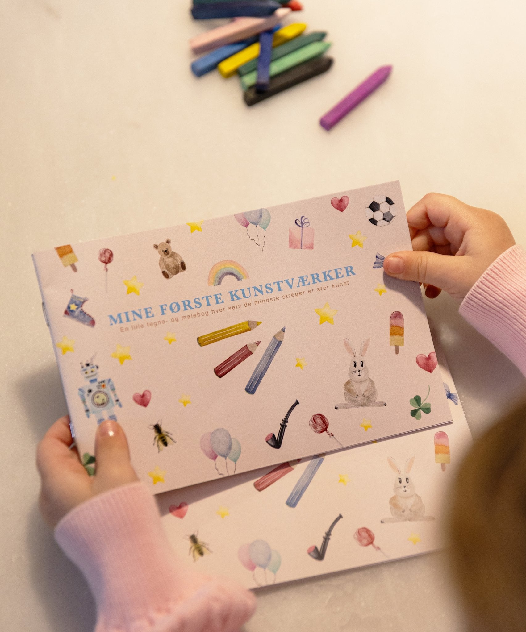 Siderne er perfekt størrelse til at kunne klippes ud og limes ind i vores BOGEN OM MIG, så barnets tegninger foreviges sammen med barndommens minder.
